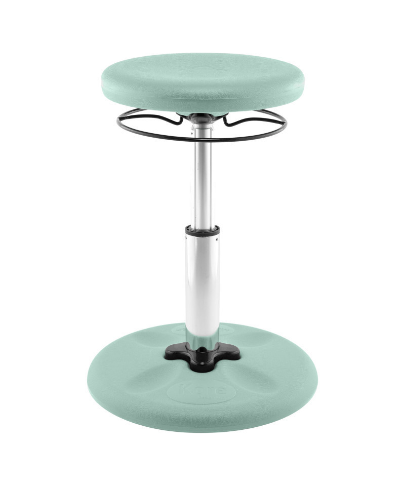The innovative Kore Design® Wobble Chair with it's gently-rounded bottom encourages active sitting and allows one's knees, hips and back to find comfortable and ever-changing positions; continuous movement increases Secondary Focus. Great for younger children, the seating height can be easily adjusted with the 360 degree Actuator Ring to grow with your child. Suggested for ages 6-11, Grade 1-6, child height 45"-57". Infused with Smart Plastic™, an anti-microbial agent that inhibits germs from growing on the stool's surface. Provides an outlet for children with high energy or sensory seating needs like ADHD or Autism. A patented anti-tip safety ring on the gently-rounded base prevents tip-overs and falls. Third-party tested and passes government regulations for children's safety. Assembles easily in 5 easy steps and is made of durable, recyclable plastic and steel piston.