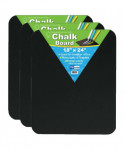 Save paper by using a time-tested and reusable writing surface. Black chalkboards are the perfect size for school, office, and home message centers. Works well for handwriting practice, working equations, brainstorming, and more. Rounded corners and smooth edges for safety and comfort. For use with white and color chalk and felt erasers. Hardboard backing is warp and chip resistant. Comes with adhesive squares for mounting. Measures 18" x 24" 0.125". Pack of 3 chalkboards.