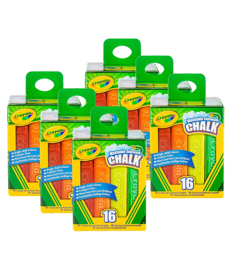 16 Sidewalk Chalk sticks per pack, sold as 6 packs, 96 chalk sticks total