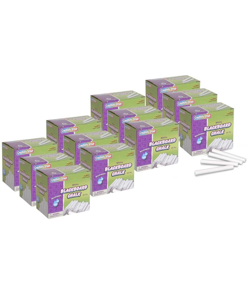Blackboard chalk that is great for teachers during classroom instruction, and also for students on chalk lapboards during individual and group work. All chalk is 0.38" diameter and 3.25" in length. Each pack includes 60 pieces of white non-toxic, washable blackboard chalk. Sold as 12 packs, 720 pieces total.