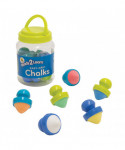 Draw fantastic creations outside or on blackboards with Easy Grip Chalk! This 6-piece set includes cone-shaped chalk pieces with spherical, easy-to-hold handles. Chalk colors are red, green, yellow, blue, orange and white. Take Easy Grip Chalk outside to play hopscotch and draw sidewalk art. Or, use them with blackboards in the classroom! Ideal for those with special needs, the ergonomic handle provides greater comfort and control. The handle design protects little hands from chalk dust while the short, cone-shaped chalk prevents breaking! As children draw, they develop fine motor skills, hand-eye coordination and imagination. Easy Grip Chalk are packaged in a plastic jar with a handle for easy cleanup, storage and travel! For ages 18m+. || Replace the chalk tips with our refills (sold separately). || Size: 2.4"H x 1.9" dia.