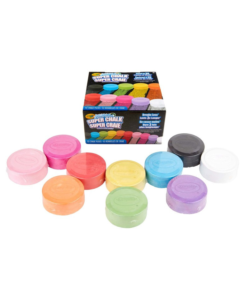 - SUPER CHALK: This puck-shaped chalk is great for coloring in large spaces with the flat sides, or adding detail lines with the curved sides & edges
