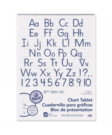 Traditional chart tablets made with pastel colored bond paper. Each tablet contains assorted colors: Yellow, Pink, Salmon, Blue and Green. Sheets 1" ruled the long way, spiral bound and 2-hole punched. Inside front cover features a Cursive alphabet. Recycled and Recyclable. Measures 24" x 16". Includes 25 sheets. Sold as a pack of 2 tablets.