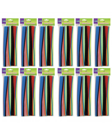 These crush-resistant polyester stems are a 12" length with a 4 mm diameter. To easily see what the product is, they are packaged in a poly bag with header. Each pack includes 100 pieces. Sold as 12 packs for a total of 1200 pieces.