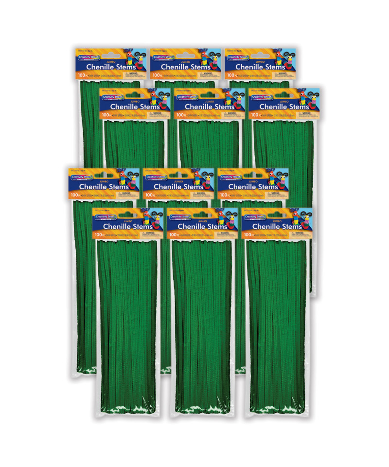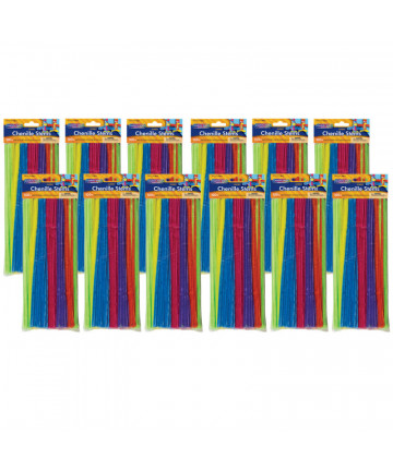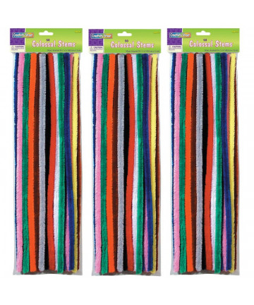 These Jumbo Stems are 12" length by 6 mm diameter, and are available in a variety of assorted colors. Bend and twist to create any shape, animal, or creature imaginable. Add beads, wiggle eyes, and other accessories to embellish your creations. Each pack includes 100 stems. Sold as 12 packs for a total of 1200 stems.
