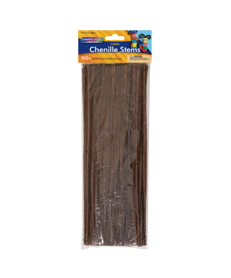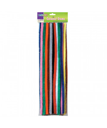These Jumbo Stems are 12" length by 6 mm diameter, and are available in a variety of assorted colors. Bend and twist to create any shape, animal, or creature imaginable. Add beads, wiggle eyes, and other accessories to embellish your creations. Each pack includes 100 stems.