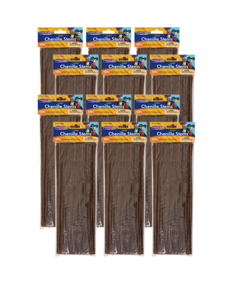 These Jumbo Stems are 12" length by 6 mm diameter, and are available in a variety of assorted colors. Bend and twist to create any shape, animal, or creature imaginable. Add beads, wiggle eyes, and other accessories to embellish your creations. Each pack includes 100 stems. Sold as 12 packs for a total of 1200 stems.