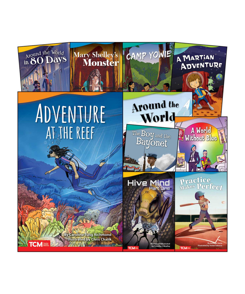 Cultivate a love of reading with illustrated fiction books that encourage students to actively read and re-read. These fun, entertaining books feature compelling text and dynamic illustrations to keep students reading from cover to cover. Motivate today's students with the books they want to read across a wide range of appealing fiction genres including graphic novels, sci-fi, fantasy, adventure, realistic fiction, historical fiction, and retellings of traditional tales. Empower students to see themselves in the books they are reading with stories that celebrate diversity and inclusion. Titles include: The Boy and the Bayonet, A Martian Adventure, Practice Makes Perfect, A World without Blue, Camp Yowie, Hive Mind: Part One, Mary Shelley's Monster, Around the World in 80 Days, Around the World, Adventure at the Reef.