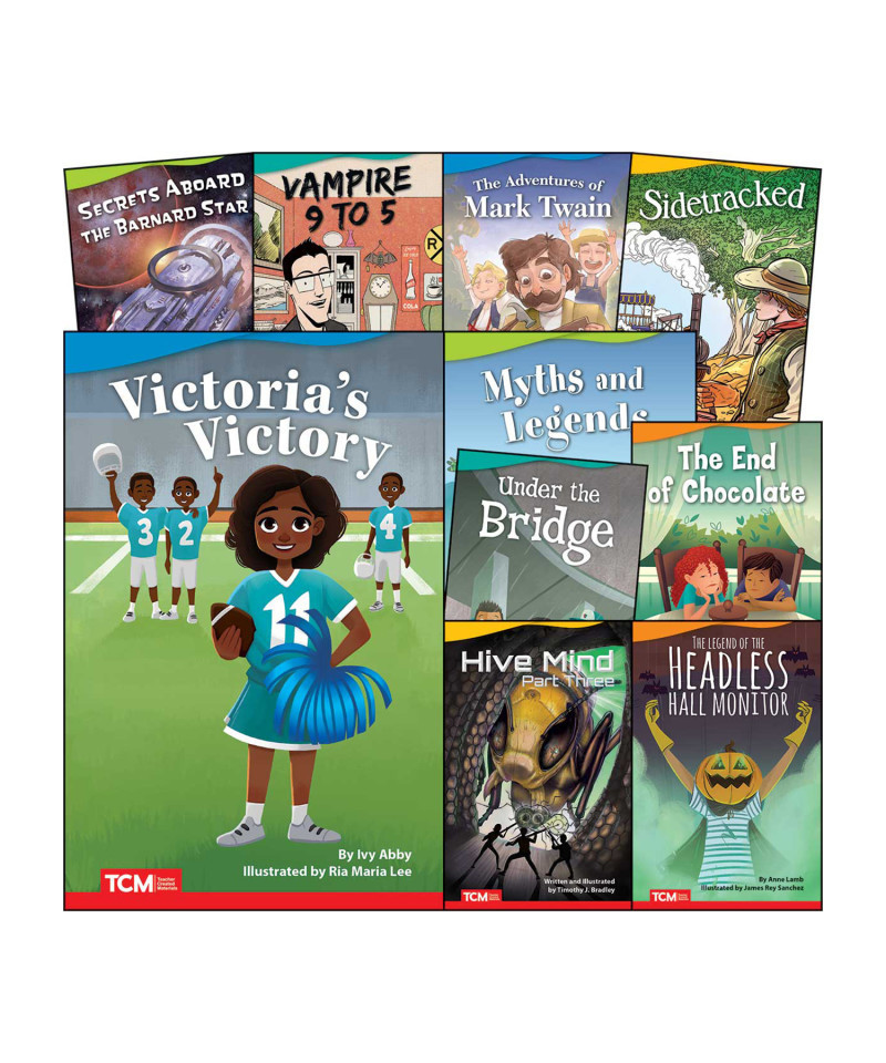 Cultivate a love of reading with illustrated fiction books that encourage students to actively read and re-read. These fun, entertaining books feature compelling text and dynamic illustrations to keep students reading from cover to cover. Motivate today's students with the books they want to read across a wide range of appealing fiction genres including graphic novels, sci-fi, fantasy, adventure, realistic fiction, historical fiction, and retellings of traditional tales. Empower students to see themselves in the books they are reading with stories that celebrate diversity and inclusion. Titles include: Under the Bridge, Secrets Aboard Barnard Star, Victoria's Victories, The End of Chocolate, Vampire 9 to 5, Hive Mind: Part Three, The Adventures of Mark Twain, Side-Tracked, Myths and Legends, The Legend of the Headless Hall Monitor.