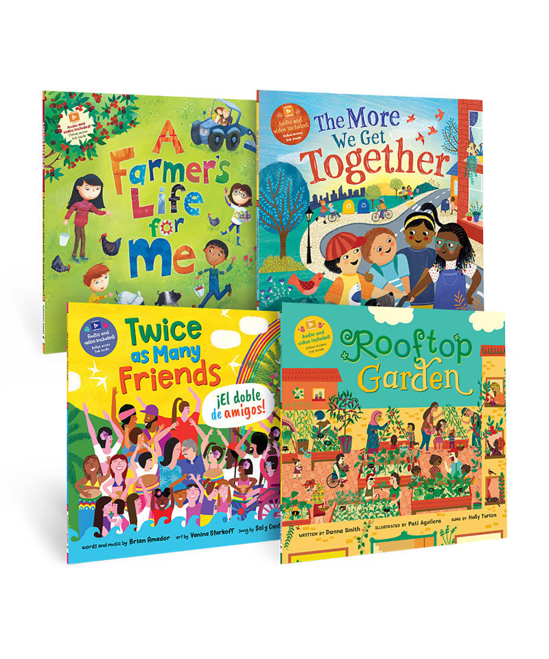 Sing, dance and learn with our bestselling Barefoot Singalongs series! Featuring themes of cultivating community and making new friends. These titles include QR codes to access online audio and animation to get kids moving and grooving. Lyrical words and fun tunes keep kids engaged while learning. Includes an online access link to audio and video animation. Information at the back of the books dive deeper into concepts covered. This bundle includes: The More We Get Together (9781646865123); Twice as Many Friends (9781646868469); Rooftop Garden (9781646864966); A Farmer's Life for Me (9781646865024).