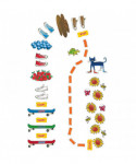 Sensory paths give students an outlet to channel some of their excess energy by directing them down a set route (or path). These paths give students the opportunity to spin, tiptoe, leap, crawl, hop, squat, stretch, or dance their way from one point to another. A sensory path can be short or it can stretch the length of a hallway, but either way the objectives should be the same—improve focus, prevent disruptive behaviors, develop motor skills, and encourage smiles! Whether a student needs to calm down or energize, refocus during a transition, or self-soothe after a stressful challenge, sensory paths are a fun and engaging way for children to take a "brain break" and work through some of their wiggles. The smooth, durable surface of each piece is easy to wipe down or spray with disinfectant to help prevent the spread of germs. The pieces attach firmly to smooth, untextured floors. Pete the Cat measures 13.1" x 11". 44 pieces total.