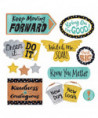 Shiny metals, playful dots, and catchy phrases are perfect reminders of motivation, confidence, and acceptance. Hang all signs together as one powerful display or spread through a room INSPIRATION. The three 9" x 12" signs are sized to fit in standard frames for extra display options. Includes 12 uniquely shaped signs, 3 rectangular signs, and 3 stars. Largest sign is 17" long.