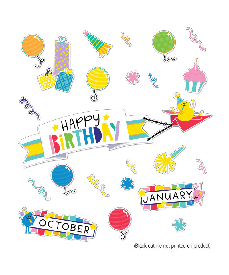 Celebrate student birthdays in style with Carson Dellosa's Happy Place Birthday Bulletin Board Set! The 73-piece bulletin board bundle features everything you need to celebrate your students' special days year-round. The set includes a "Happy Birthday" banner with 12 monthly headers. The bulletin board decor set also includes balloons, party horns, gifts, streamers, confetti accents, and a cupcake cut-out. Made from durable material, this vibrant set is perfect for decorating bulletin boards, chalkboards, wall displays, and more throughout the school year. Education happens everywhere, and Carson Dellosa strives to provide the tools needed to inspire learning everywhere it happens.