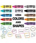 Eureka Bulletin Board Sets are a great way to add creativity to bulletin boards, hallways, walls and classroom space with fun designs and themes. Each 28 piece set includes 5 panels with: 12 crayons marked with the names of the colors, 4 piece "Colors and Shapes" header with Crayola logo, 12 shapes marked with names.