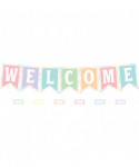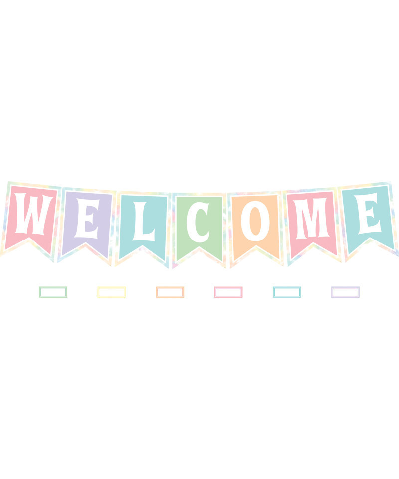 Features: 7 title pieces, spelling out "Welcome", 46 multi-purpose, blank label accents, Bulletin board guide with set-up and activity suggestions, Shiny protective coating for durability