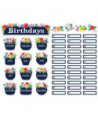 Features: 1 "Birthdays" title piece, 12 monthly headers, 36 labels for student names, 4 floral accents, and bulletin board guide with suggestions and activities