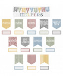 Ignite a sense of responsibility and teamwork with this adorable classroom helpers bulletin board set. The set includes titles for Calendar, Clean-Up Crew, Lights, Line Leader, Messenger, Papers, Pencils, Supplies, and Teacher’s Helper plus blank pieces that you can customize. The header piece measures 21" x 6". 48 total pieces.