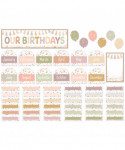 Shine a spotlight on students with this charming and celebratory birthday mini bulletin board. Header piece measures 21" x 6". 56 total pieces. Shiny, protective coating. Features: 1 "Our Birthdays" title piece, 12 monthly headers, 1 decorative frame, 6 balloon accents, 36 labels, Bulletin board guide with suggestions and activities.