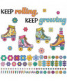 Motivate your students year-round with classroom décor that is sure to inspire them Retro Remix Motivational Bulletin Board Set! The 103-piece bulletin board set includes a 4-piece header (10.2" x 4.22" to 22.55" x 7.23"), and roller skates, flowers, stems, lightning bolts, twinkles, and starburst accents ranging in size from 1.71" to 12.4" x 13.15"—perfect for wall décor, bulletin board, white board, and cork board displays. The banner features an inspirational quote, "Keep rolling, keep growing" that is perfect for student work displays. You can also use the retro décor as name labels to showcase student names. Retro Remix, designed by Stephanie and Loreal of @HappilyEverElementary, partnered with Carson Dellosa to bring some fun, retro vibes to your learning environment.
