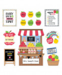 This charming Apple Time Bulletin Board Set provides a fresh and colorful way to welcome students to your classroom. Set can be customized by adding children's names to student apples, the class identity to the apple stand, a special message to the jumbo red apple, and a favorite subject area to the "We love ______ to the core" piece. Set includes motivating posters and signs.