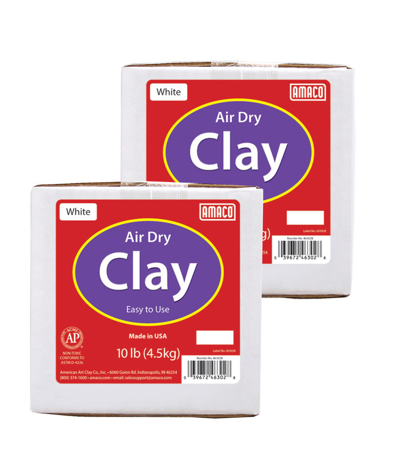 White Air Dry Clay is an all-purpose air dry clay to use for sculpting, hand modeling, or throwing on a potter's wheel. Once pieces are finished, air dry evenly and slowly on all sides. Pieces will dry hard, but must be handled carefully to avoid breakage. Pieces can be decorated with paint, and sealed with shellac for added strength and to waterproof. This clay can also be fired to cone 04 for hardness/permanence and to glaze. Each box includes 10 lbs of clay. Sold as 2 boxes for a total of 20 lbs.