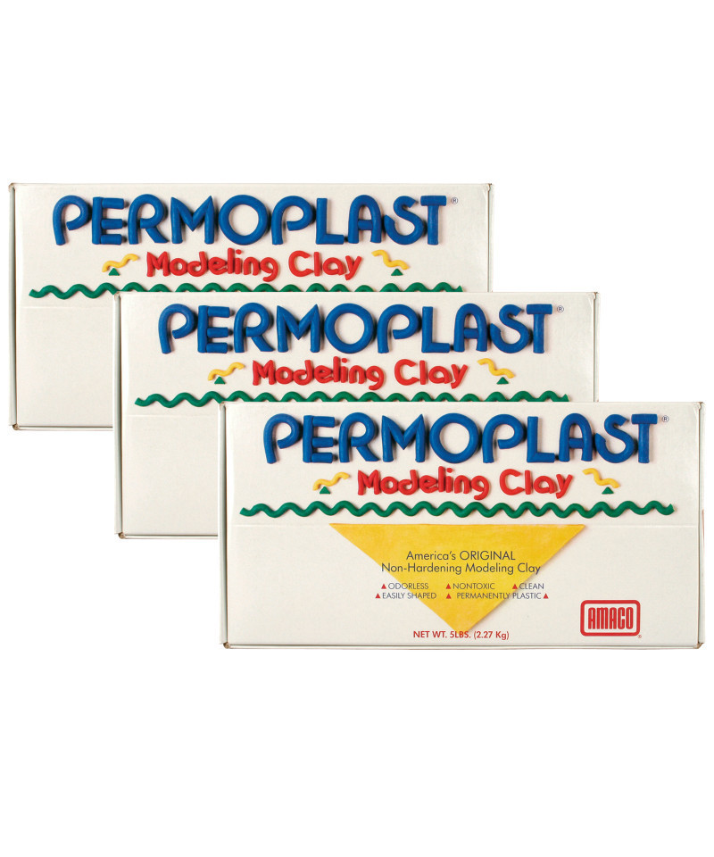 Permoplast® Non-Hardening Modeling Clay is America's original non-hardening modeling clay. This product is odorless, nontoxic, and clean to use. This plastic clay can be reused when stored airtight. This non-hardening clay is great for developing small motor skills and hand/eye coordination. Each box includes 1 lb. of clay. Sold as 3 boxes for a total of 3 lbs. of clay.