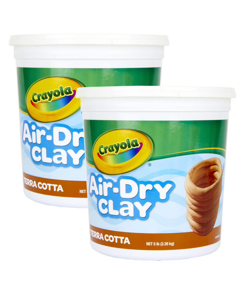 Smoother, finer, and more moldable than traditional clay, Crayola Air Dry Clay softens with just a few drops of water. Simply add water to the clay, let the excess evaporate, and begin molding to create an original sculpture. With Air Dry Clay, kids can create a huge range of different products using all the traditional sculpting techniques, such as pinching, coiling, score-and-weld, and slabbing. It is also well-suited for creating impressions, textures, and stamps. Crayola Air Dry Clay works well with other Crayola products, including tempura paints, acrylic paints, and watercolors. Kids can paint over entire slabs or add simple accents to create a colorful final piece of art. The clay sticks to glitter, spangles, and other embellishments, so kids can bedazzle their sculptures however they want. Sold as a pack of two 5-pound pack of Terra Cotta Air Dry Clay.