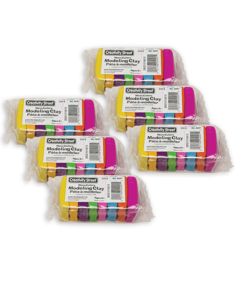 Permanently soft modeling clay is great for artists of all ages. Colors can be blended to create new colors! This clay contains eight assorted neon colors, which can be blended to create new colors. Safe vegetable dye is used to create these colors with the finest quality materials. Total package weight is 220 grams. Sold as 6 packs, for a total weight of 1320 grams.