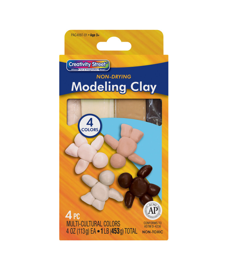Permanently soft modeling clay is great for artists of all ages. Colors can be blended to create new colors! This four color multicultural assortment that includes 1/4 lb. sticks in each color and comes in a total of 1 lb. It is wrapped in poly and featured in a retail-friendly box with product viewing window. All modeling clays are non-toxic.