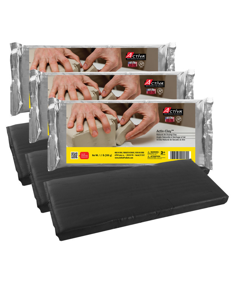 Unleash your creativity with Activ-Clay Air Dry Clay, a fine-grained, self-hardening clay designed for both beginners and experienced sculptors. This strong, durable clay is perfect for hand-building, sculpting, and even throwing on a wheel, allowing for detailed and intricate designs. It dries within 24 hours with minimal shrinkage and can be carved, nailed, and sanded once hardened. Activ-Clay also accepts a wide variety of finishes, making it perfect for painting, glazing, and mixed-media projects. Plus, it can be stored for weeks in an airtight container to keep it fresh for your next masterpiece! Sold as a pack of 3.