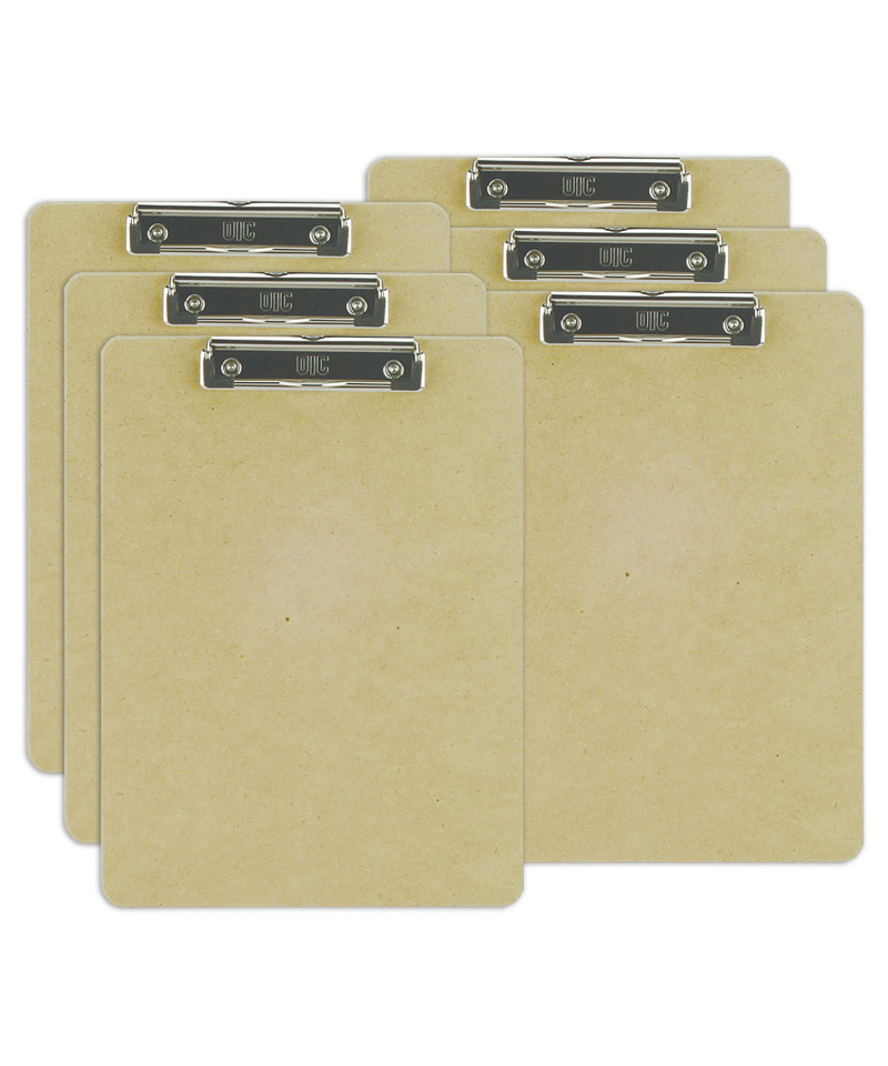 Perfect for traveling or on site needs, this letter size clipboard is made of high quality hardboard and features a strong, low profile clip. Measures 9"W x 12.5"H x 0.5"D. Made from 100% recycled/recovered wood fibers. Low profile clip has extra strong holding power, and can fit easily in a briefcase. Sold as a pack of 6 clipboards.