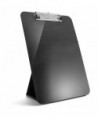 Clipboard holds letter-size and A4-size documents. Low-profile clip has a retractable hang hole and securely holds up to 20 sheets of paper. Easel on the back is sturdy and easy to stand on a desk or any flat surface. Easel provides angle to keep notes in view while typing. Easy to store, folds flat when not in use. Made from 30% recycled plastic.