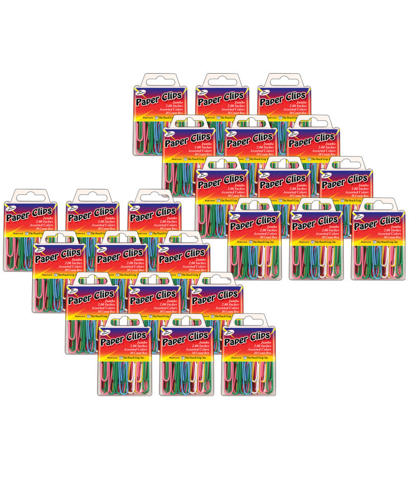 Great for the classroom, home or office. Paper clips measure 2" and come in assorted colors. Includes 30 pieces in a plastic box. Sold as 24 boxes for a total of 720 paper clips.