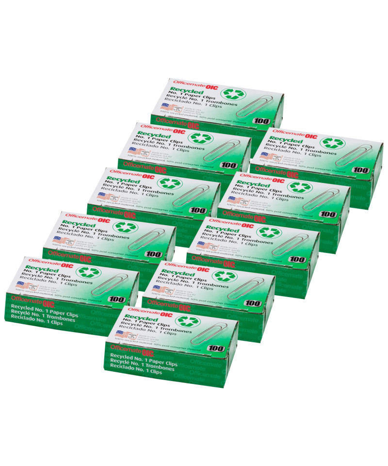 Recycled paper clips deliver the same holding capacity as standard paper clips. #1 size paper clips made from 100% recycled material. Made in USA. Each box includes 100 paper clips. Sold as 10 boxes for a total of 1000 paper clips.