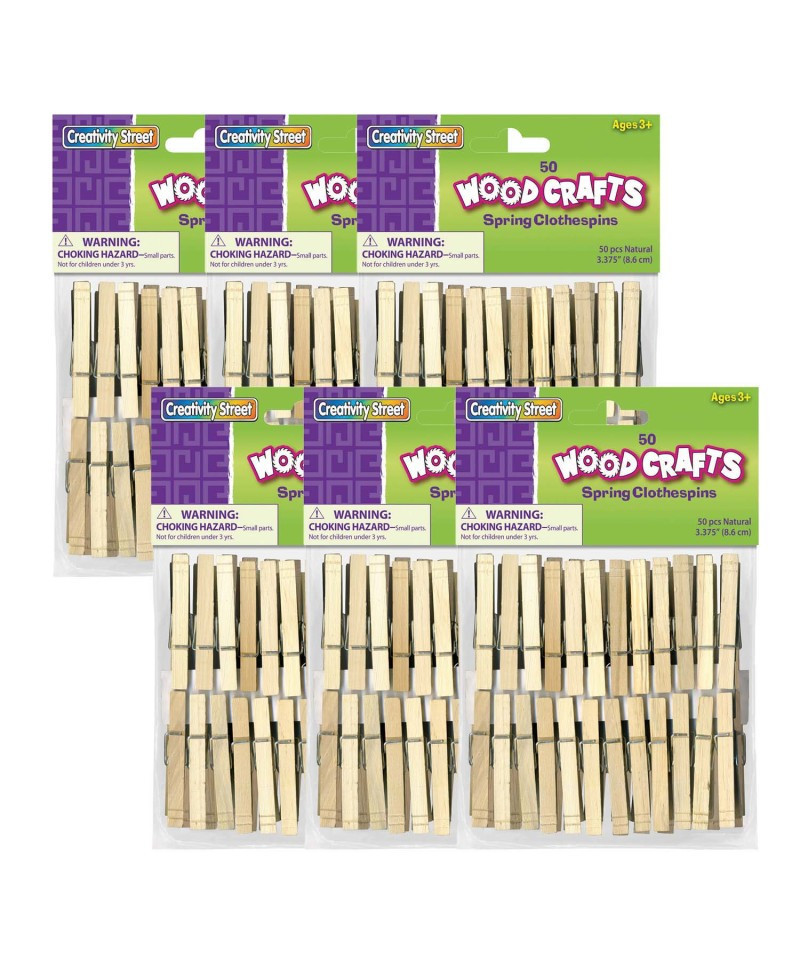 Natural wood spring clothespins are a great addition to any arts and crafts project. They are easy to paint and stain, and can be used to create animals, seasonal decorations and much more. Extra-Large Spring Clothespins are 3.38" in length. Each pack includes 50 pieces. Sold as 6 packs for a total of 300 pieces.