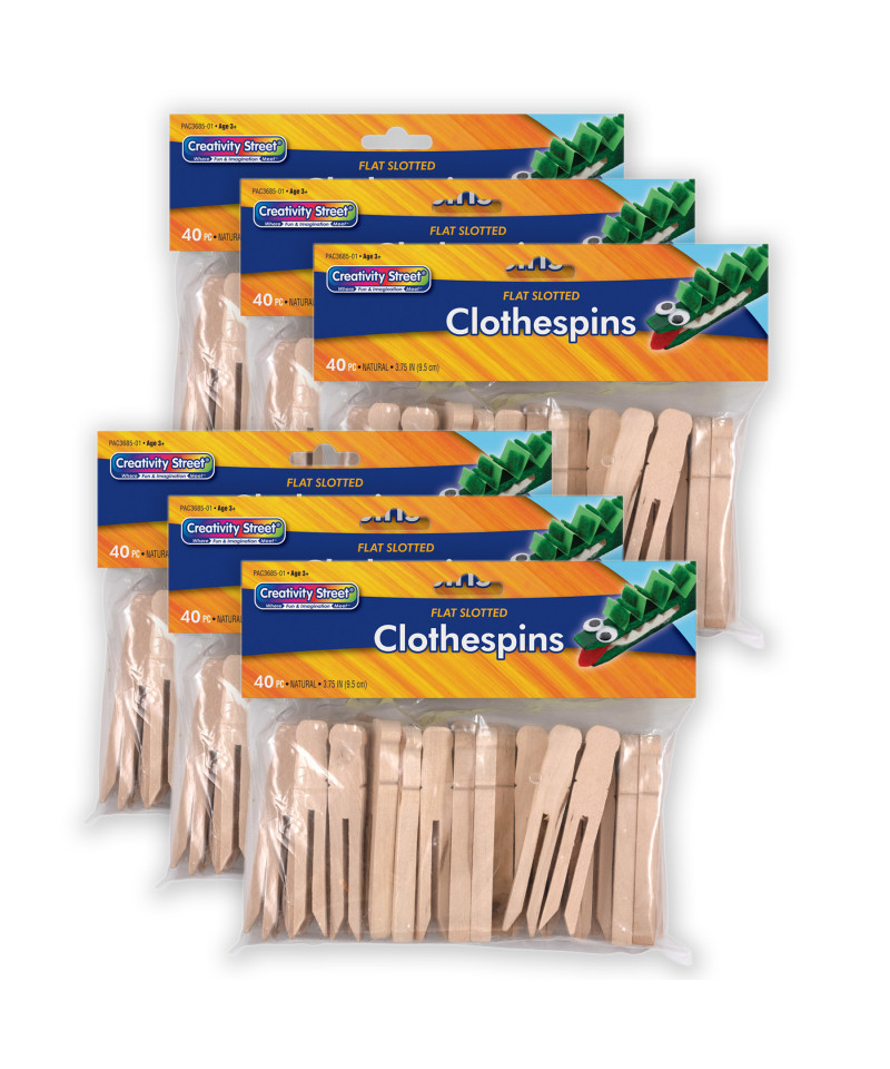 Natural Flat Slotted Clothespins are ideal for arts and crafts projects. The flat sides makes it easy to glue multiple clothespins together, or glue other arts and crafts materials to the clothespin. Each clothespin is 3-3/4" in length. Each pack includes 40 pieces. Sold as 6 packs for a total of 240 clothespins.