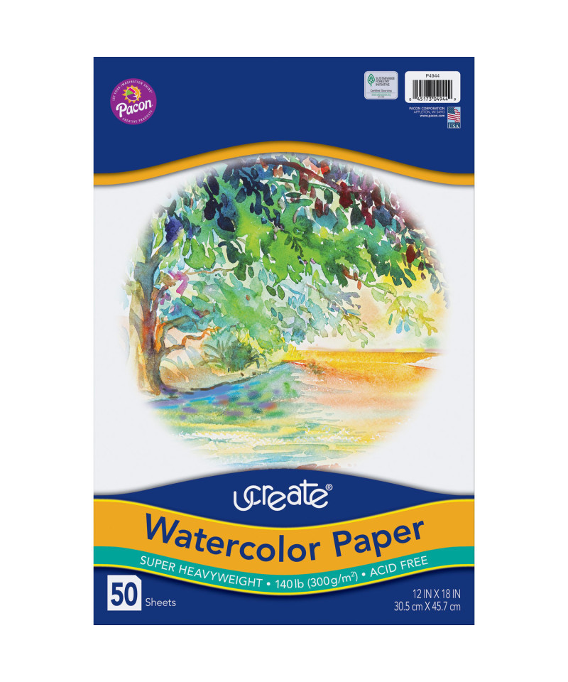 This 140 lb. Watercolor Paper comes in economical package, and is perfect for groups or classrooms. No stretching required. Acid-free and recyclable. Sheets measure 12" x 18". Each pack includes 50 sheets.