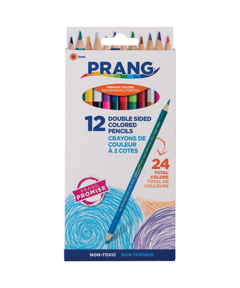 Pre-sharpened colored pencils are ready for immediate use. Features two colors per pencil with a smooth 3mm core for colorful and comfortable creativity. Wood casing sharpens easily for extended use. Each set includes 12 colored pencils containing 24 assorted colors.
