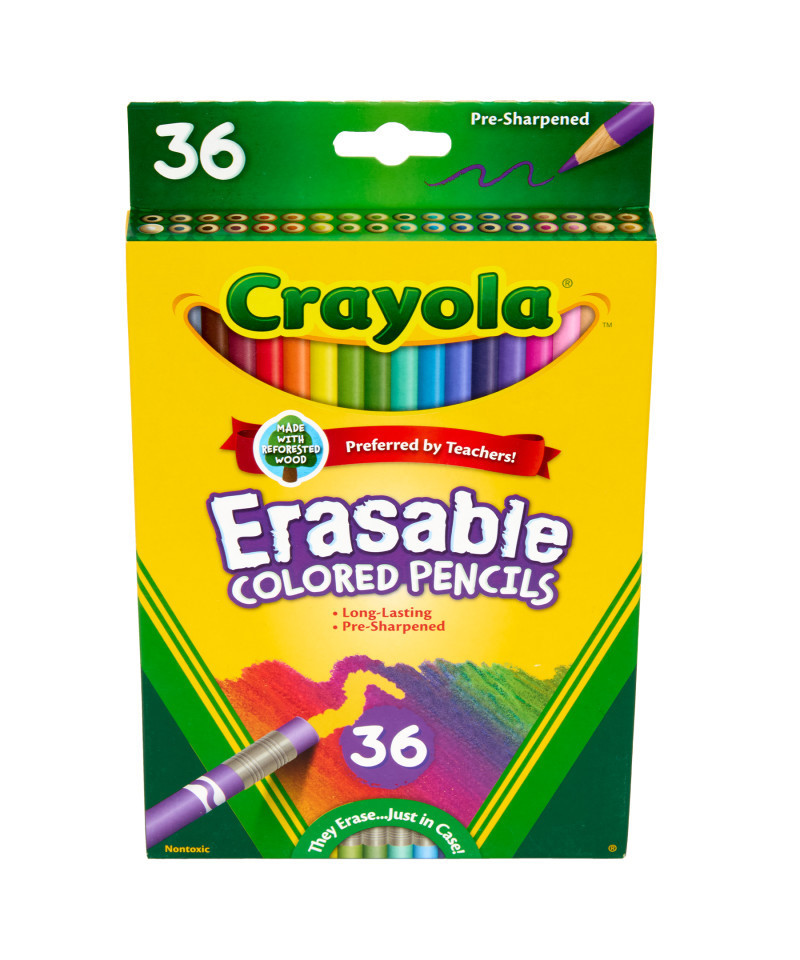 - ERASABLE ART: Crayola Erasable Colored Pencils are a great tool for kids. 36 pre-sharpened colored pencils with erasers let kids redo drawings or correct mistakes. Brightly colored lines are perfect for school projects and creating detailed artwork.