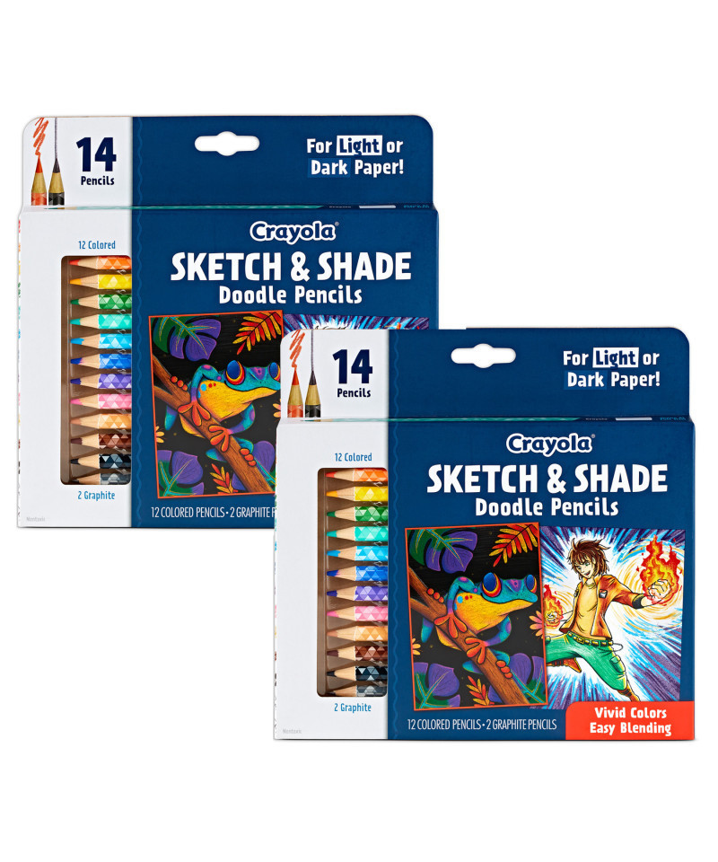 From vibrant doodles to colorful details, this set of Crayola Sketch & Shade Doodle Pencils offers vivid, highly pigmented colors that will stand out. Each Colored Pencil features a gel core so that they always lay down smoothly on light and dark paper. Plus, this unique pencil set features 2 graphite sketching pencils to sketch out your designs before adding color. Pair it with a sketch pad or construction paper to get started creating right away, or add intricate details to simple line art coloring pages. This set makes a great gift for adults and kids, ages 8 & up. Each pack includes 14 pencils: 12 colored and 2 graphite. Sold as 2 packs for a total of 28 pencils.