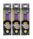 Crayola Twistables Colored Pencils are the easy way to color on the go, and now they are available in Bright & Bold colors that work on both light and dark paper! Avoid waiting for a sharpener to continue using your favorite colors or cleaning up pencil shavings that always end up creating a mess, these colored pencils don't require sharpening. Simply twist up for more color, or twist down to protect the color core. The plastic casing makes it easy to see how much color is left, while the pencil size never changes, so it's always easy to hold. Pair with Bold & Bright crayons and markers (each sold separately). They are perfect for classrooms and craft rooms, eliminating those tiresome sharpener lines! Each pack includes 12 pencils. Sold as 3 packs for a total of 36 pencils.
