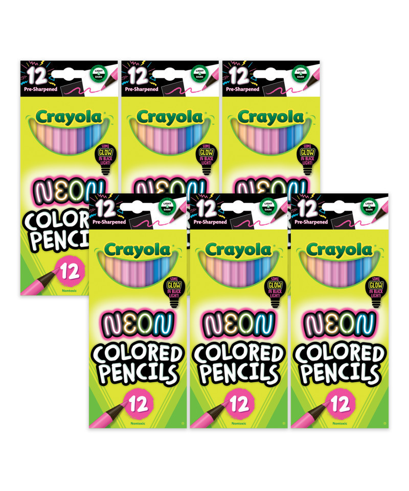 - NEON COLORED PENCILS FOR KIDS: Create shockingly bright works of art with this pack of Neon Colored Pencils for kids, featuring 12 unique glow-in-the-dark colors per pack. Sold as 6 packs for a total of 72 pencils.