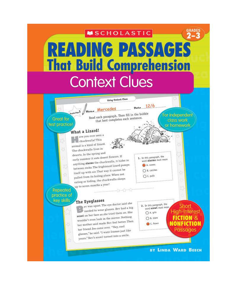 Give students the repeated practice they need to master the reading skill of using context clues, and succeed on tests! Each of the 35 reproducible pages features a high-interest fiction and nonfiction reading passage with bubble-test practice questions that target this essential comprehension reading skill. Flexible and easy to use—in school or at home—the book also includes model lessons, pre- and post-assessments, and an answer key.