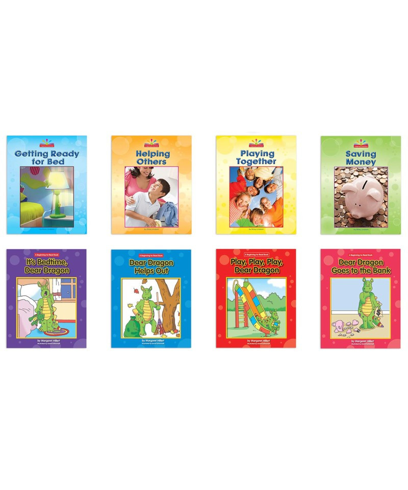 Books in the Character Education set include: Getting Ready for Bed, Helping Others, Playing Together, Saving Money (Read and Discover series) It's Bedtime, Dear Dragon; Dear Dragon Helps Out; Play, Play, Play, Dear Dragon; Dear Dragon Goes to the Bank (Dear Dragon series).