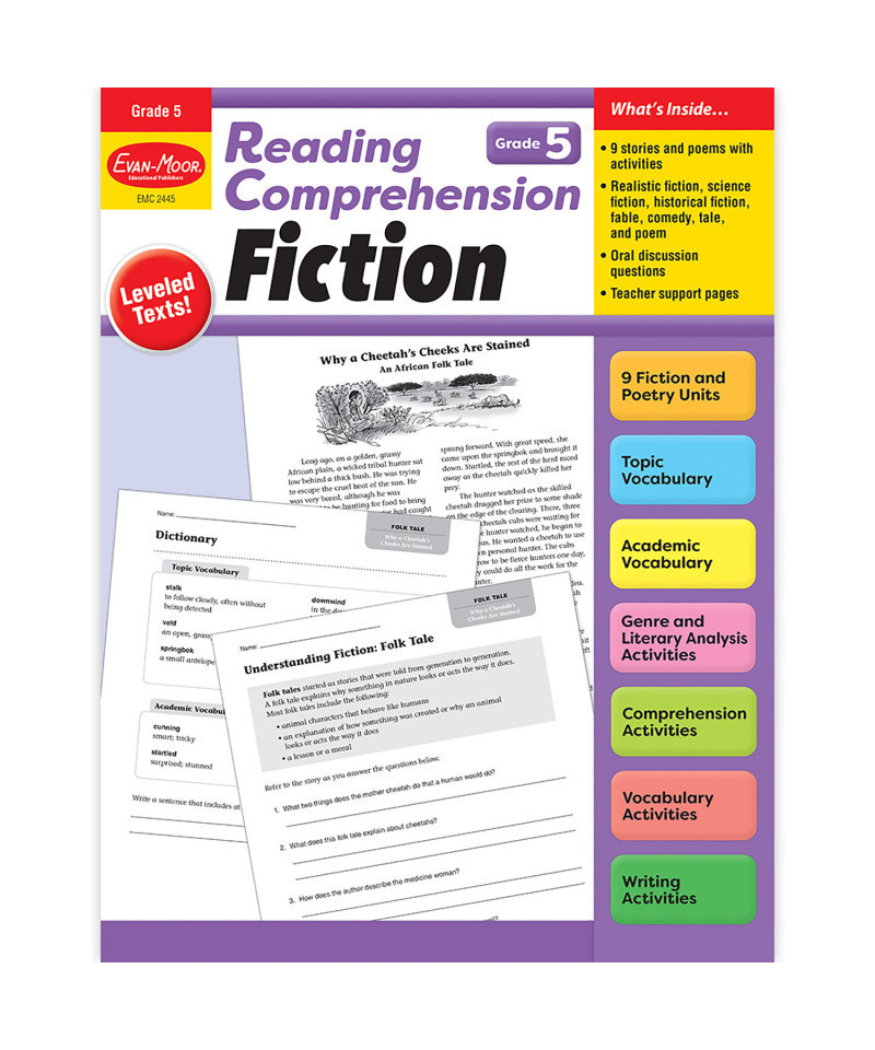 - Reading Comprehension: Fiction, Grade 5 builds strong reading comprehension skills with leveled fiction stories and comprehension activities!