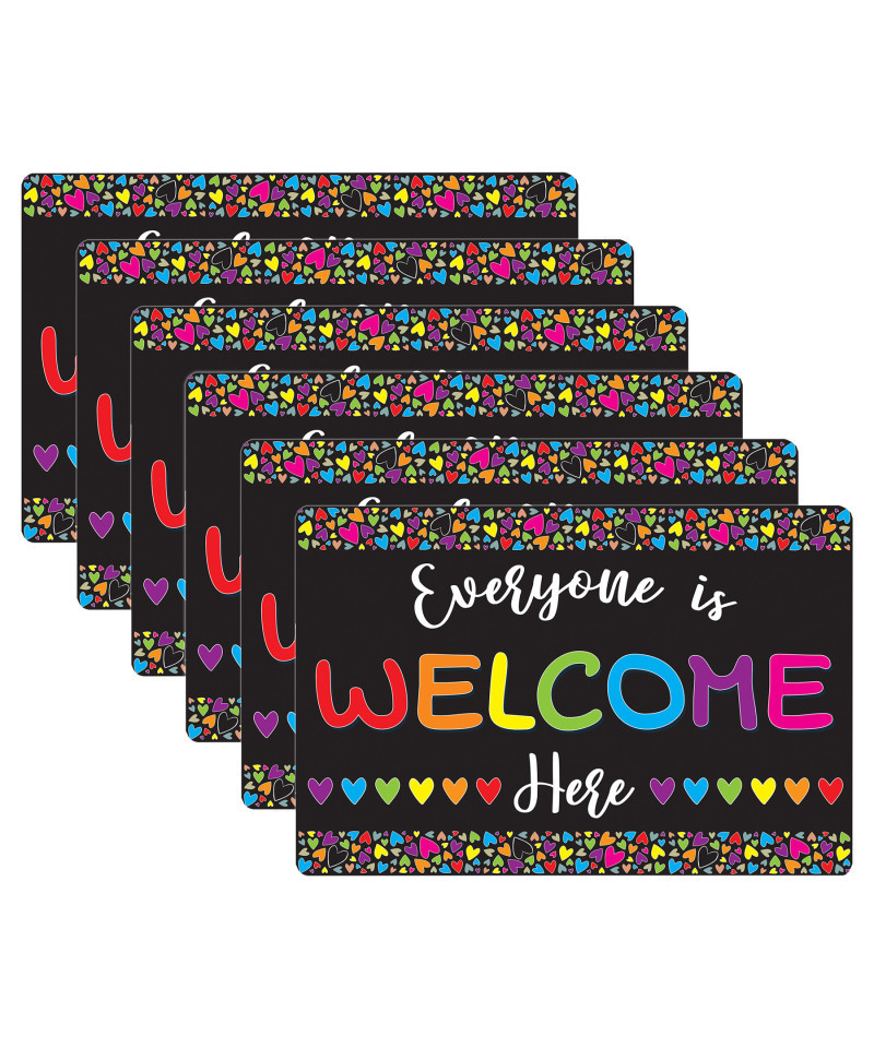 Smart Poly® Computer Mouse Pad, 8" x 10", Everyone is Welcome Here, Hearts, Pack of 6