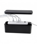 CableBox is designed to hide your chaotic cable clutter. CableBox is big enough to fit a large surge protector with plenty of additional room for extra cords. No need to unplug your cords from your power strip, simply place it directly in the box and run the cords through the openings on the sides. The high density, flame-retardant plastic and non-slip grip make the CableBox the safest and most functional tool to hide your cable tangles. The interior dimensions are 15.75" L x 5.75" W x 4.25" H and the exterior dimensions are 16" L x 6.25" W x 5.25" H.