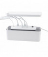 CableBox is designed to hide your chaotic cable clutter. CableBox is big enough to fit a large surge protector with plenty of additional room for extra cords. No need to unplug your cords from your power strip, simply place it directly in the box and run the cords through the openings on the sides. The high density, flame-retardant plastic and non-slip grip make the CableBox the safest and most functional tool to hide your cable tangles. The interior dimensions are 15.75" L x 5.75" W x 4.25" H and the exterior dimensions are 16" L x 6.25" W x 5.25" H.