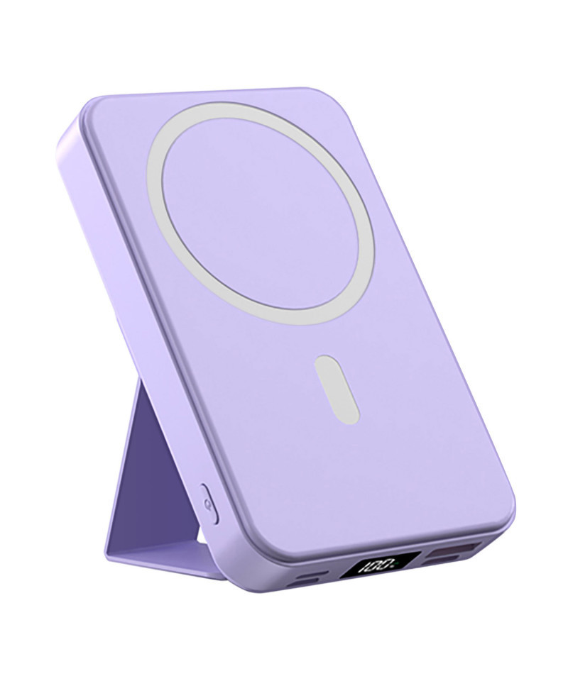 Alpha Digital 10,000mAh Magnetic Wireless Charge Power Bank with Foldable Stand, Purple