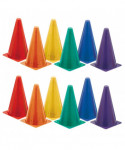 Create an obstacle course, mark boundaries, or practice agility with the Hi-Visibility Fluorescent Poly Cone Set. These Hi-Visibility Fluorescent Poly 9" Cones are sold in Green, Orange, Purple, Red, Royal Blue and Yellow. Each set includes 6 cones. Sold as 2 sets for a total of 12 cones.